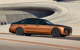 Modifications were made to the chassis, too. Standard on the i7 M70 xDrive is an M-specific adaptive two-axle air suspension with electronically controlled dampers and automatic self-levelling. An additional shear panel between the bulkhead and spring strut towers produces a substantial increase in body rigidity at the front. The standard 21-inch M light-alloy wheels feature an exclusive, aerodynamically optimized design and are slowed down by M Sport brakes with larger discs. And for the first time on the i7, high-performance tires (on 20-inch wheels) are offered as an option.
